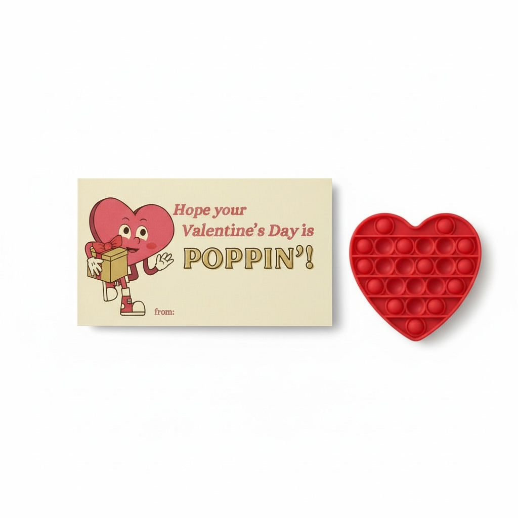 Add a pop of fun to Valentine's Day with Poppin' Valentines! The retro-inspired heart character and colorful design make for a unique and personalized message. Pair with heart-shaped pop-its for a fan-favorite gift. Surprise your classmates, teammates, co-workers, etc. with a touch of nostalgia and modern charm.